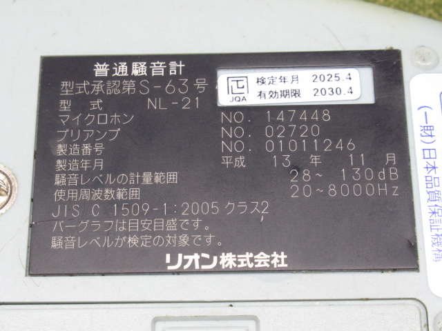 通電のみ確認 現状品 検定期限2030/4まで RION リオン NL-21 SOUND LEVEL METER サウンドレベルメーター 普通騒音計 管理7H0924H-A5をヤフオクで探す