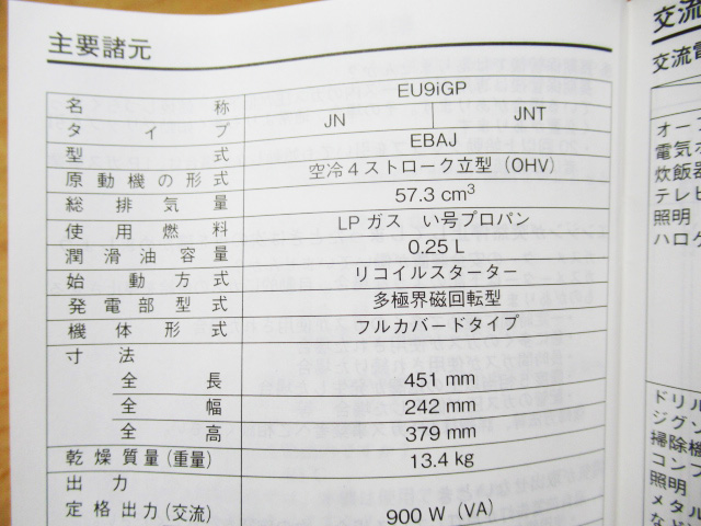 HONDA ホンダ EU9iGP インバーター発電機 ホース無し 低圧LPガス LGP プロパンガス 2018年式 動作未確認 現状品 管理7k1006G-kaidanをヤフオクで探す