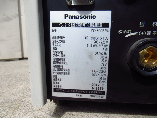 Panasonic パナソニック YC-300BP4 インバータ制御交直両用TIG溶接電源 溶接機 2017年製 付属品 取説あり 管理7KJ1010A-oogataをヤフオクで探す