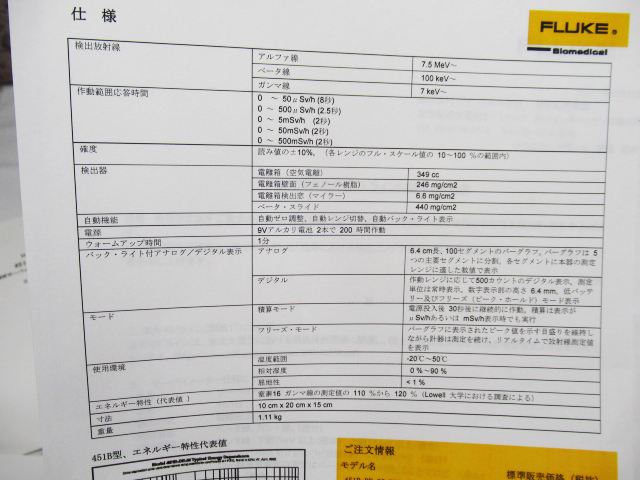 未使用品 FLUKE フルーク 451B-DE-SI-RYR 高感度デジアナ電離箱サーベイメーター 放射線測定器 箱無し 説明書付き 管理7k1031B-F02をヤフオクで探す