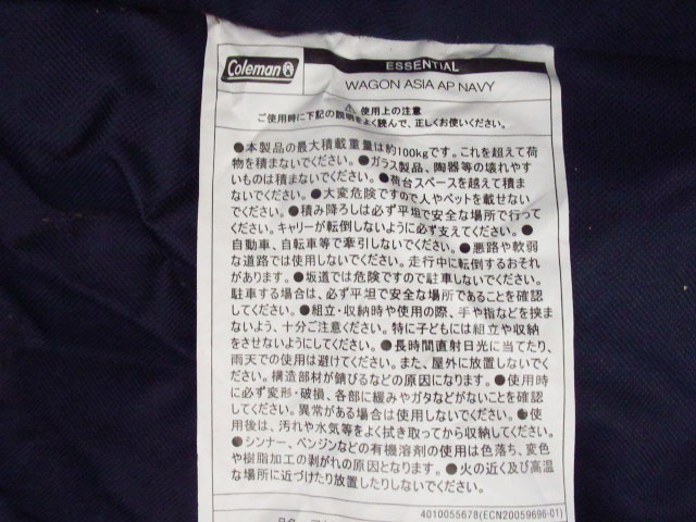 Coleman コールマン アウトドアワゴン 2000032031 WAGON ASIA AP NAVY キャンプ アウトドア 管理7S1206C-G4をヤフオクで探す