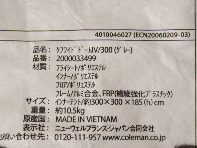 Coleman コールマン タフワイドドーム4/300 グレー / テントシートセット/300 インナーシート グランドシート テント キャンプ 管理7N1216Dをヤフオクで探す