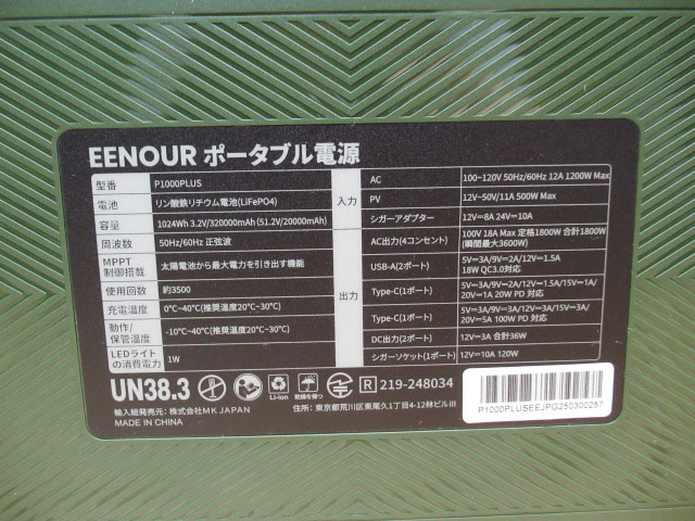 EENOUR イーノウ ポータブル電源 P1000PLUS キャンプ アウトドア 通電確認済み 現状品 管理8S0105E-B3をヤフオクで探す