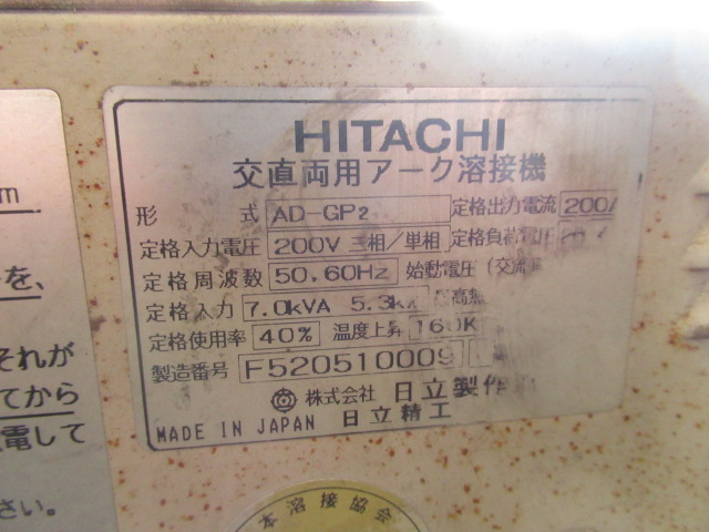 HITACHI 日立 AD-GP2 交直両用アーク溶接機 200V 50/60Hz トーチ ケーブル等付属 現状品 管理8KX0114A-oogataをヤフオクで探す