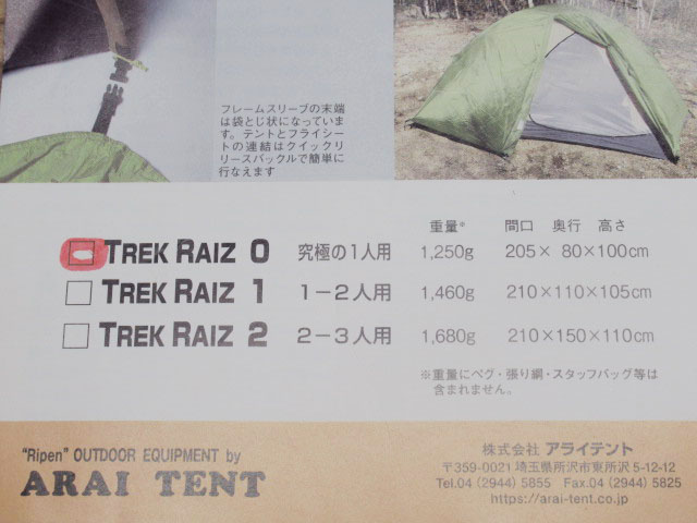 ARAI TENT アライテント TREK RIZ 0 トレックライズ 究極の1人用 キャンプ アウトドア 管理8S0126L-B2をヤフオクで探す