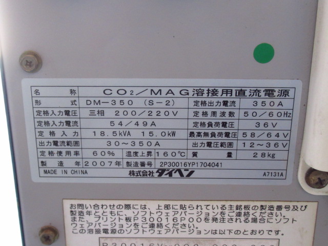 DAIHEN ダイヘン DM-350 S-2 CO2 / MAG溶接用直流電源 / CM-7401 ワイヤ供給装置 / トーチ リモコン 付き 現状品 管理8KX0127Aをヤフオクで探す