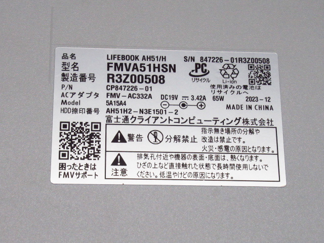 FUJITSU 富士通 LITEBOOK FMVA51HSN シルバー メモリ16GB Ryzen7 5700U 512GB win11 15.6インチ ノートパソコン 管理8k0302I-H10をヤフオクで探す