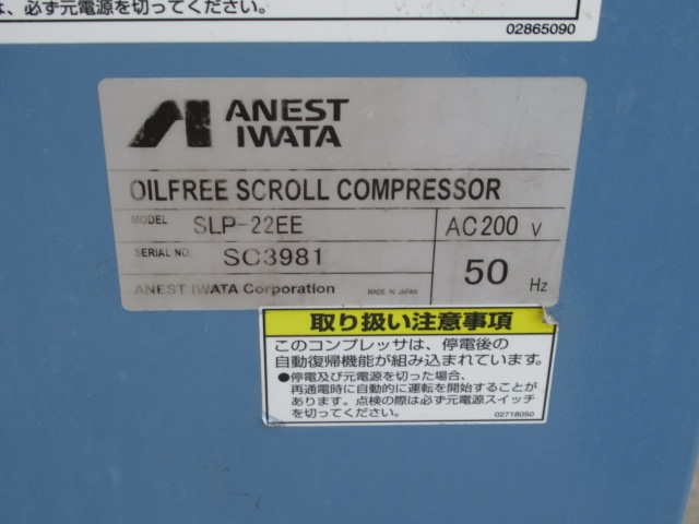 ANEST IWATA アネスト岩田 SLP-22EE オイルフリースクリューコンプレッサー AC200V 50Hz 現状品 管理8KX0309Gをヤフオクで探す
