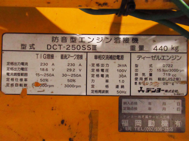 見学可能 福岡県久留米市保管 Denyo デンヨー 防音型エンジン溶接機 TIGウェルダー DCT-250SS3 現状品 管理8N0409E-Zをヤフオクで探す