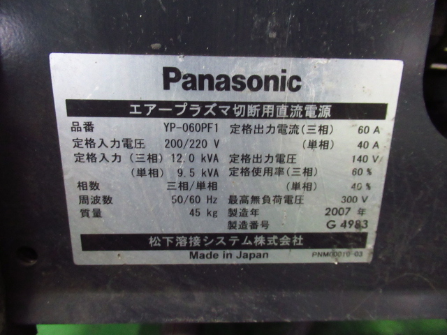 Panasonic パナソニック YP-060PF1 エアープラズマ切断用直流電源 プラズマ切断機 管理8AJ0418A-oogataをヤフオクで探す